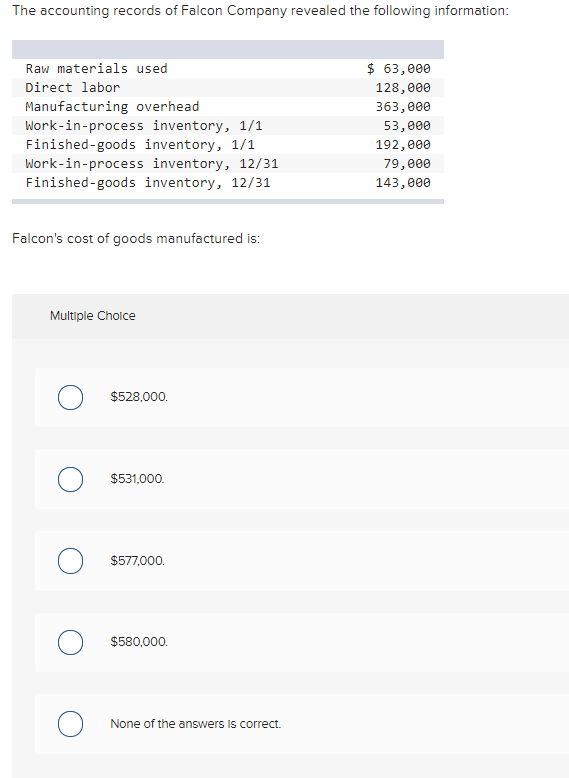Solved The Accounting Records Of Falcon Company Revealed The Chegg Com